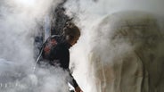 唐津市北波多に三里窯を持ち、藁灰釉の施釉された斑唐津を焼くことにこだわりつづける「斑唐津の名手」浜本洋好。