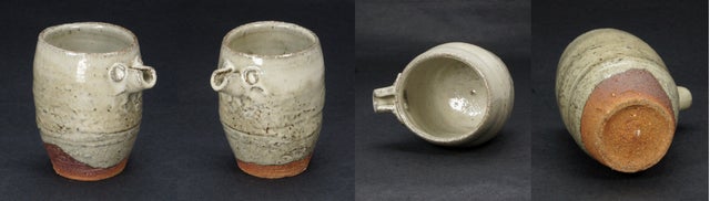 口縁が少し外に反り胴はふっくら、目と口の付いた愛嬌のある丸い形は可愛いだけでなく、実はお酒をうまくする。答えは後述!