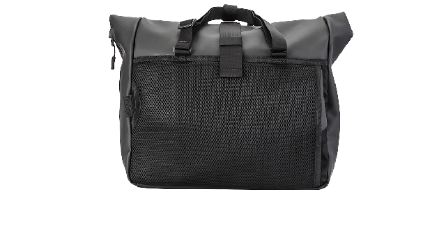 背中の通気性を確保するための「メッシュ生地」と、メッセンジャーベルトを収納するためのポケットに使われる「ナイロン生地」。それぞれ生地の内側に水を通さない透明のPVCを張っているので、こちらからも内部へ浸水いたしません。