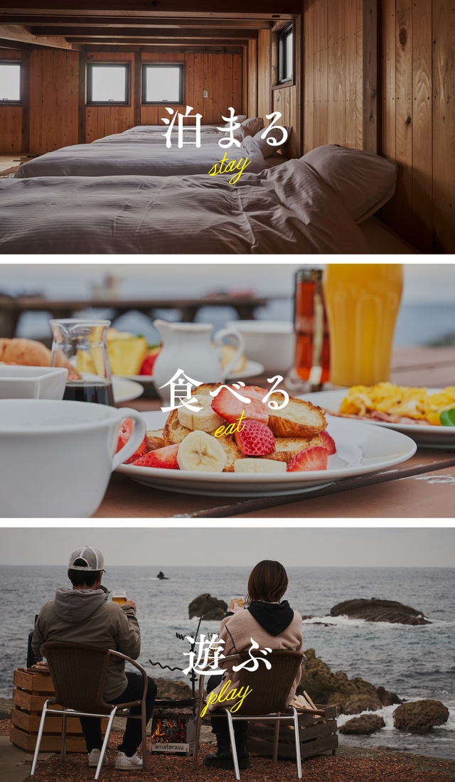 太陽に照らされた鮮やかな⻘い海と爽やかな⾵で⽬覚め、⼤⾃然と⽥舎ならではの素朴な⼈柄に触れ、⼣陽を眺めながら⽕を囲む。写真や動画では伝わらない、ここでしか感じることのできない『空気』をぜひご体感いただき、皆様の⼈⽣がより良きものになりますことを⼼より願っております。