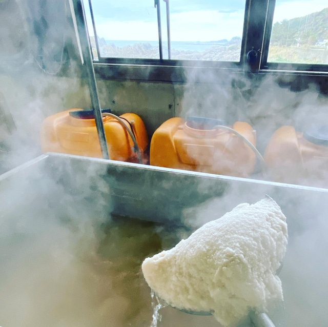 2019年に移住し、釜⼾も⼀から⼿作り、⼭海の恵みが詰まった豊かな海⽔を濾過し、丁寧に薪⽕で焚き上げています。