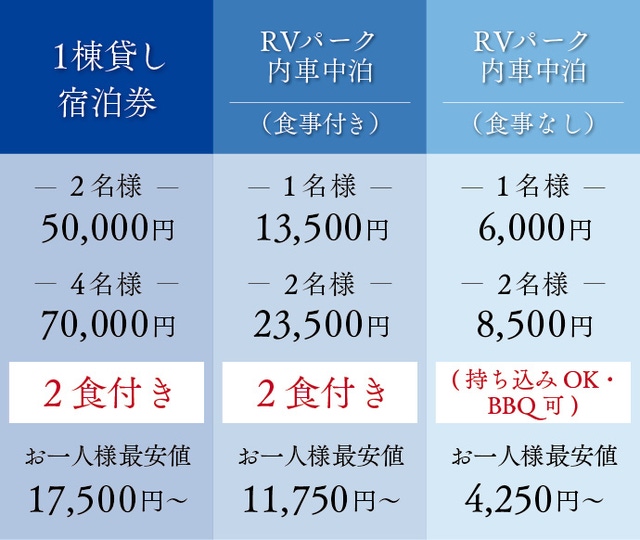 ・RVパーク内での車中泊(食事なし/持ち込み・BBQ可)