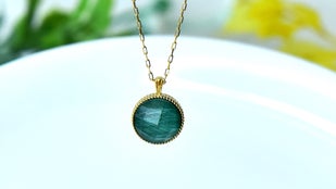 マラカイトとクオーツを2枚重ね合わせるダブレット技法。
