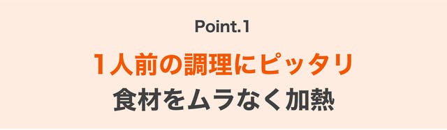通常サイズの調理器具で少量の調理を行う場合、加熱にムラが出てしまう場合があります。「My Cook NEO」であれば、少量の調理に適したサイズなので食材をムラなく加熱し美味しく仕上げます。