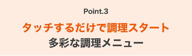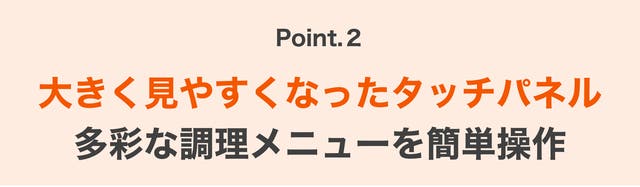 - 大きく見やすいタッチパネルで誰でも簡単操作!多彩な調理メニューからお好みの料理を簡単に作れる!
