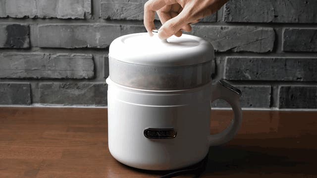 「My Cook NEO」は蓋や内側だけでなく外側も水洗いができます。電源の差込口に付いているキャップを閉めることで本体も水洗いが可能になります。コンパクトサイズなので、お手入れし易いく、いつでも衛生的にご使用いただけます。