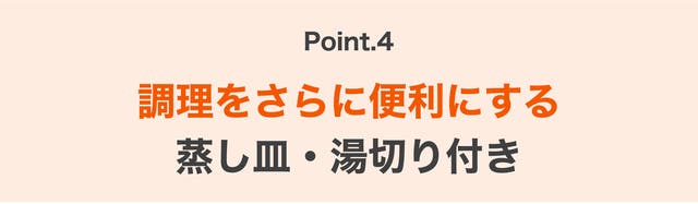 - 専用の湯切りが付いて、料理の幅が広がりました!毎日の献立を助ける20種類のレシピブック付き!