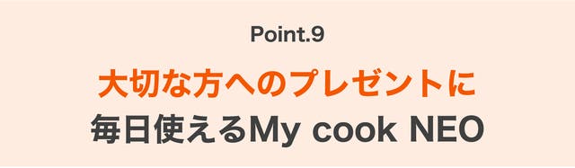 「My Cook NEO」は日常的にお使い頂けるものだから、ご自身用としてはもちろん、いつも料理をしてくれているご家族や、忙しくていつもお惣菜ばかりの1人暮らしのご友人へ、離れて暮らすご両親へのプレゼントとしても最適です。