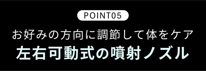 噴射ノズルは水流の出る方向を左右に調節ができる可動式です。ケアしたい体の部位にジェット水流を当てるなど、手動でお好みの方向に調節ができます。