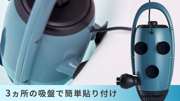 ナノバスジェットは、浴槽に貼り付けるだけで本格的なスパ体験が楽しめます。面倒な工事や取り付けは不要!3ヵ所の吸盤で浴槽に貼り付けるだけで簡単にご使用いただけます。本体はIPX7の防水性能(MAXラインから下部分)なので水中でも安定したパフォーマンスを発揮します。