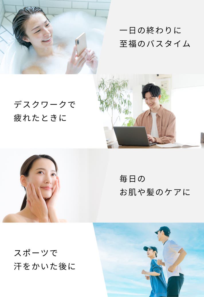 日常のバスタイムを、ただの入浴から洗浄効果と肌や髪のケアまで兼ね備えた、特別なリラックスタイムへ。