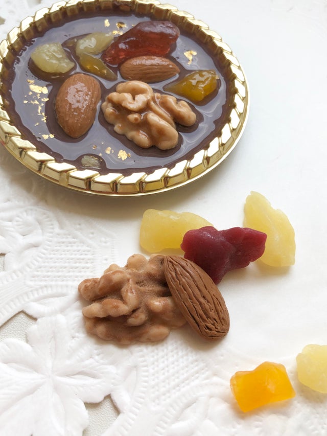 マンディアンチョコレート石けんの上にあるナッツやお花なども