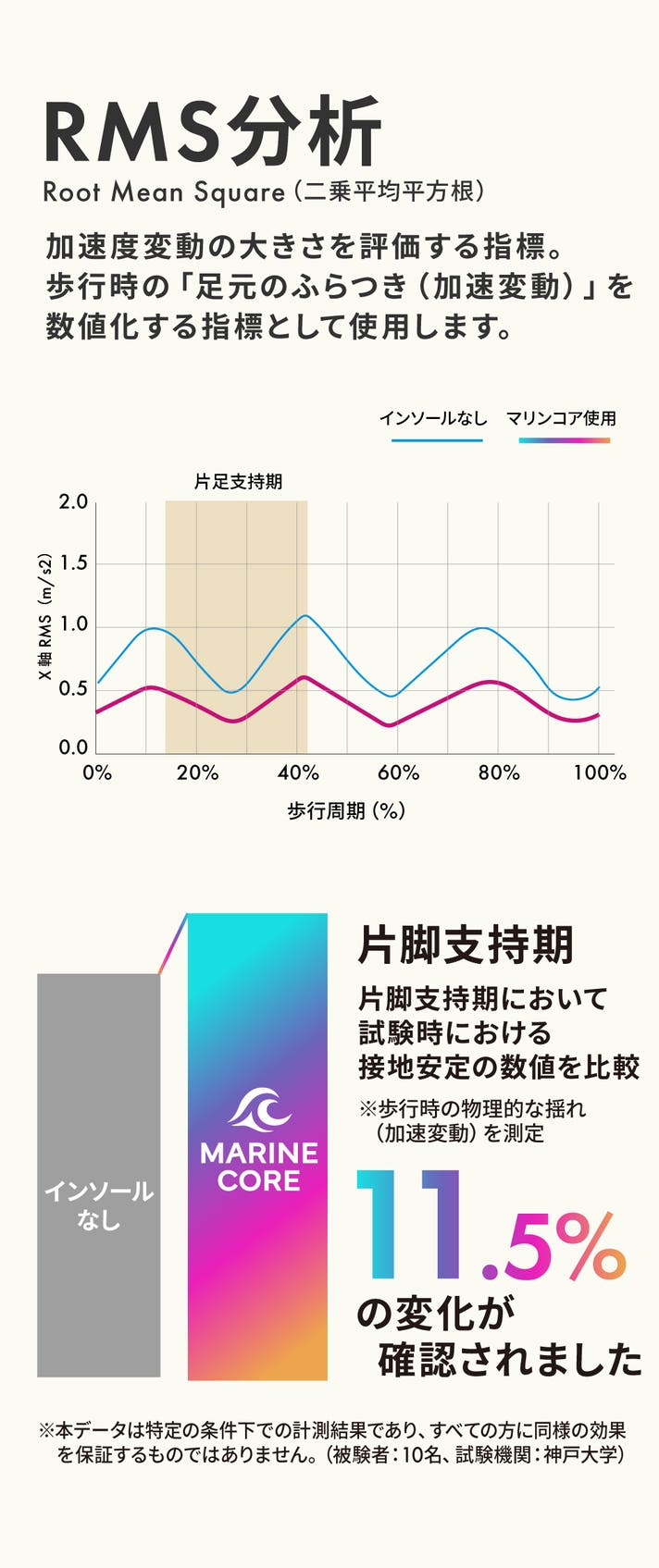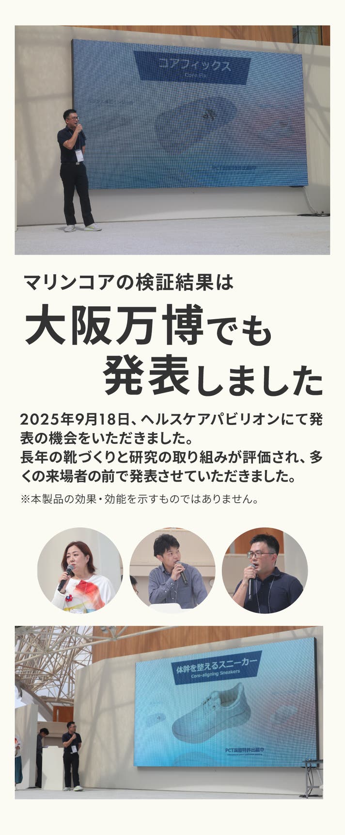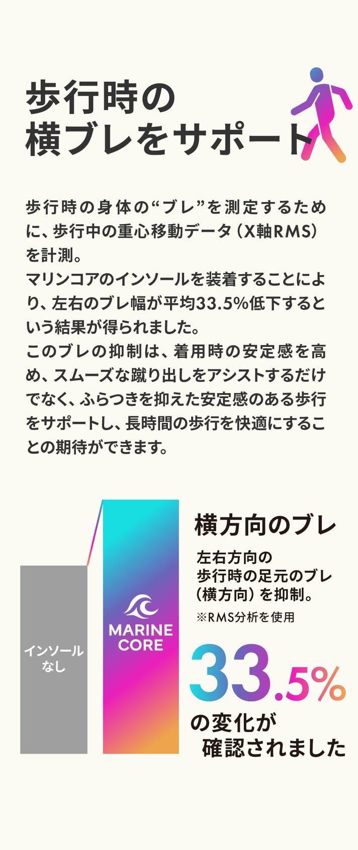 年齢・性別・職業を問わず、ライフスタイルの見直しや新たなチャレンジ、あるいはただ「快適に過ごしたい」という気持ち。日々の中で訪れるそうした変化の芽生えを、MARINE COREは足元から支えます。