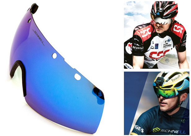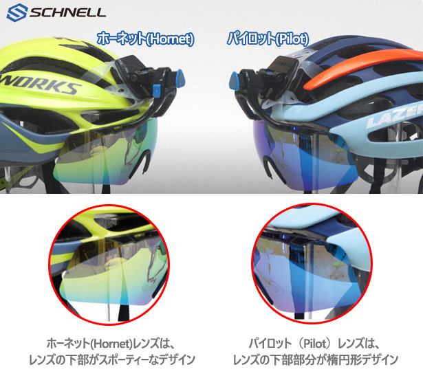 シュネルエアロシールドはサイクリングを楽しむプロ選手や、自転車好きなお客様のために製作された、ヘルメットへの装着が簡単な、取り外し型ゴーグルです。
