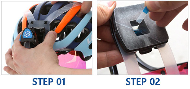 強力な接着力のゲルテープとシリコンバンドを利用した実装方式のため、ほとんどのヘルメットに取り外しが可能です。