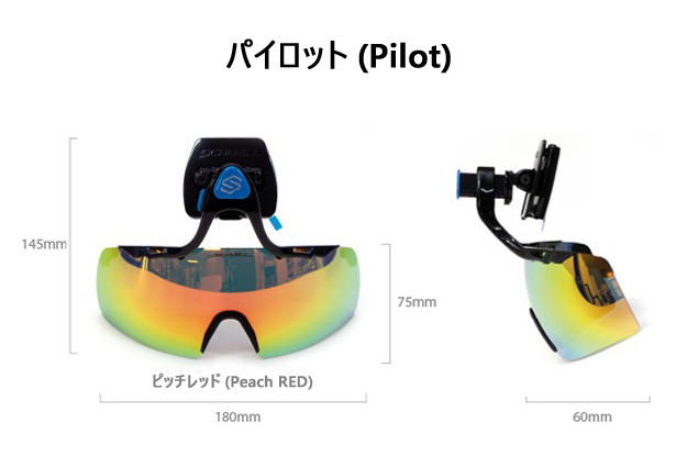 ピッチ・レッド(Peach RED),トーチブルー(Torch BLUE)、チタンシルバー(Titanium SILVER)、ジェード・グリーン(Jade GREEN)、夜間透明レンズ)