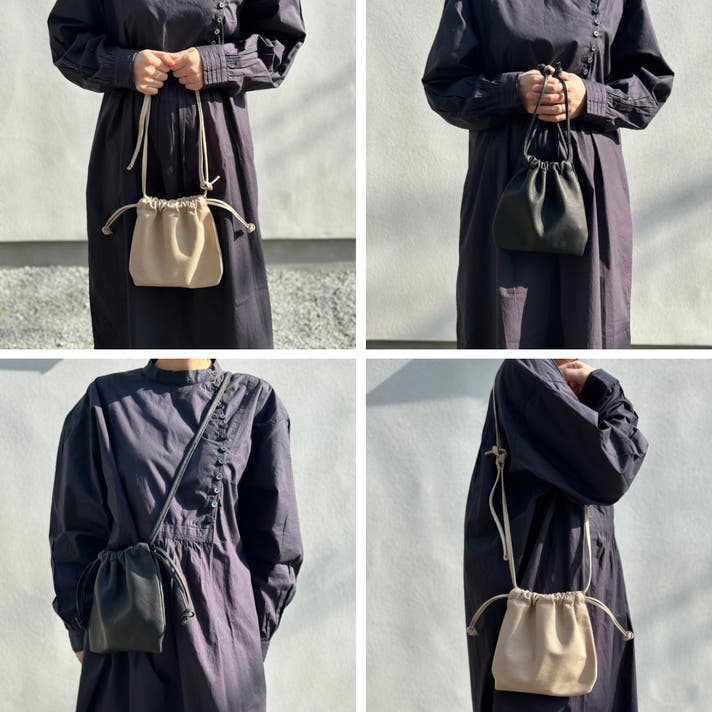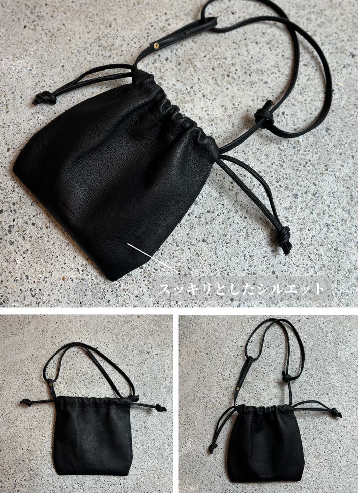 その日の気分やスタイルに合わせて、自由に変えられる。新感覚のミニマル4way本革巾着バッグです。