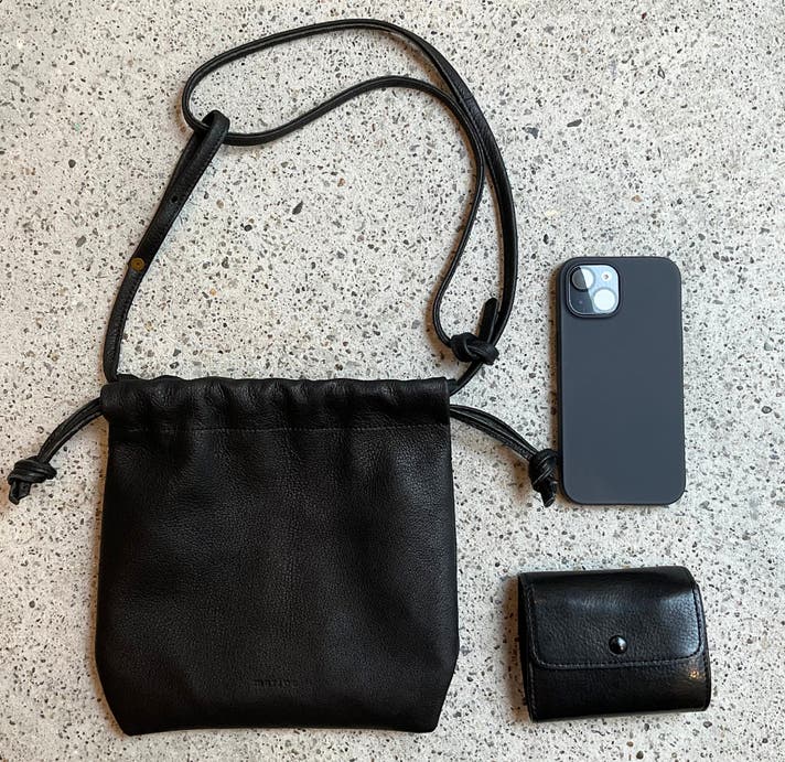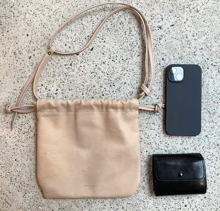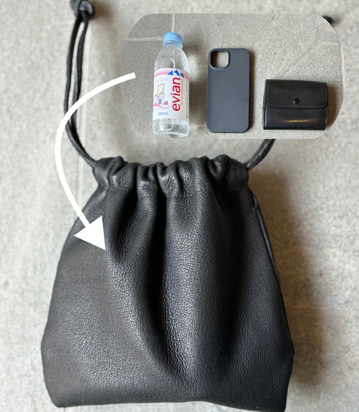 ついつい色んなものを入れてパンパンになってバッグが重くなったりしまいがちですがこの4way巾着バッグはスマホ、財布など最低限の必需品が綺麗に収まるので余計なものは入れたくないサイズ感。