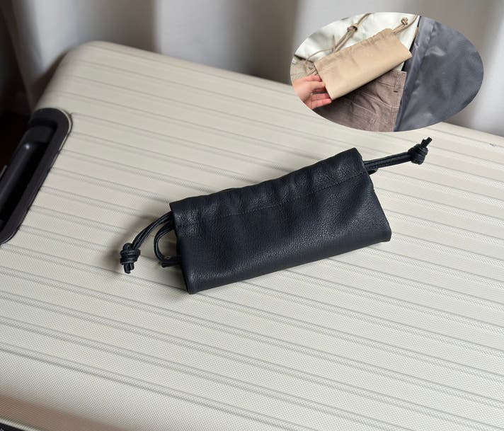 「本革でしっかりしているのに、畳めて旅行に持っていける」コンパクトかつ畳んでもシワになりにくく、型崩れしにくいのでキャリーケースに気兼ねなく持っていける。