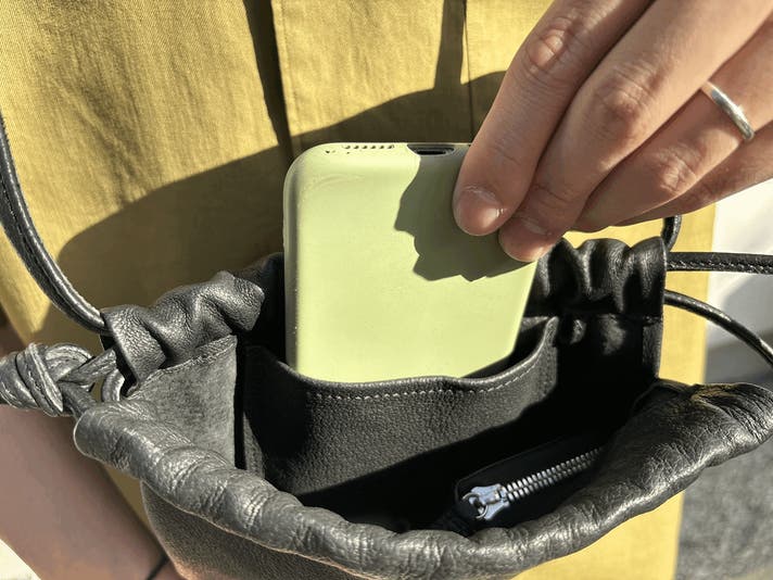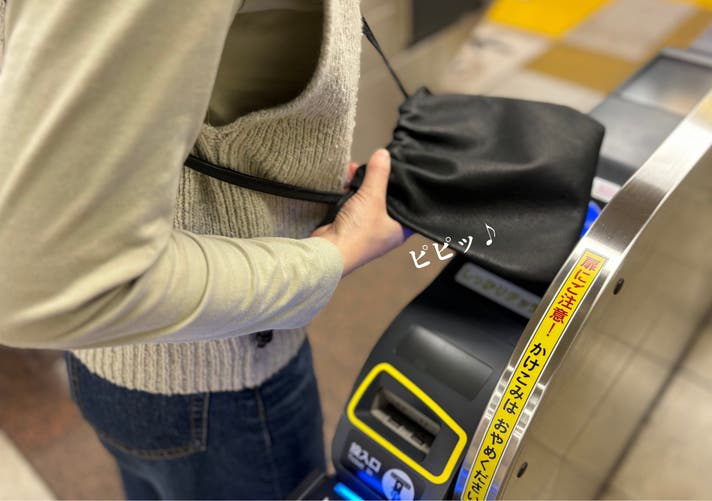 内装のポケットにスマホを入れれば背面側からタッチでスマートに対応。
