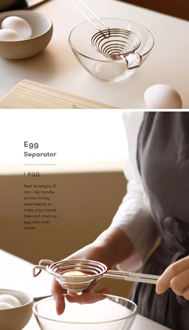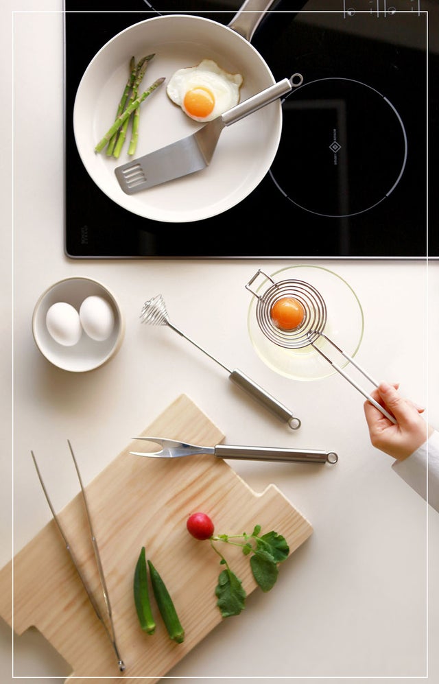 元々持っている調理道具もあると思うので、黄身わけ器やサービングフォークのような特化した調理器具を紹介したいと思っていましたが、今回はユニークで実用的な調理器具を皆さまにご紹介することができてとても嬉しいです。 セットで備えておけば、目玉焼きやパスタなどの麺料理、ピザ、茹で肉、焼き芋、蒸しトウモロコシなど、できる料理が増え、料理のレパートリーがはるかに豊かになると思います。