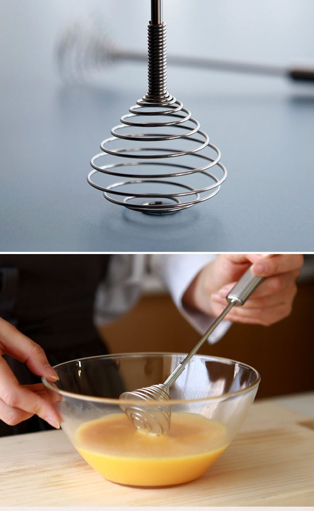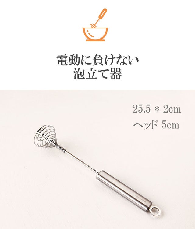 弾力のある螺旋状ヘッドのスプリング型泡立て器です。 材料を弾力を加えながら解き混ぜた後、空気を素早く取り入れもっちり泡を作り出します。 メレンゲ、牛乳、クリームのホイップ作りに適しており、数分で簡単にメレンゲを作ることができます。