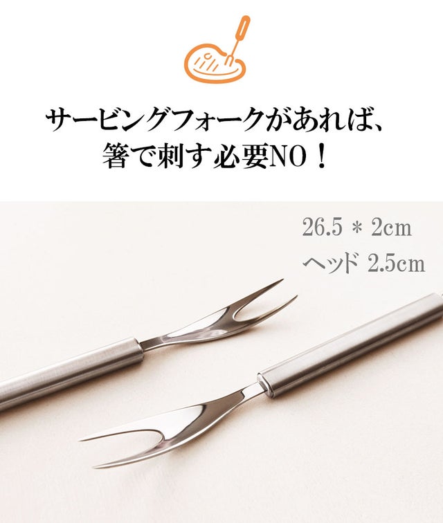 - サービングフォークの刃の部分が鋭くなっている場合がございますので、ご使用の際は十分お気をつけください。