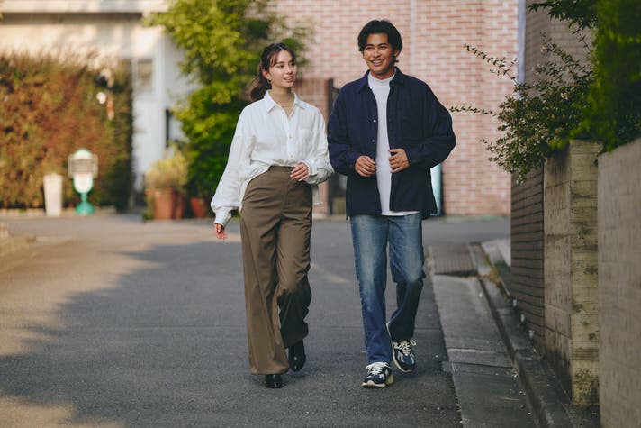 A: はい、オーバーサイズシャツ×ワイドパンツのスタイリッシュなデザインで、パジャマっぽさを感じさせません。散歩やちょっとそこまでのお出かけに最適です。