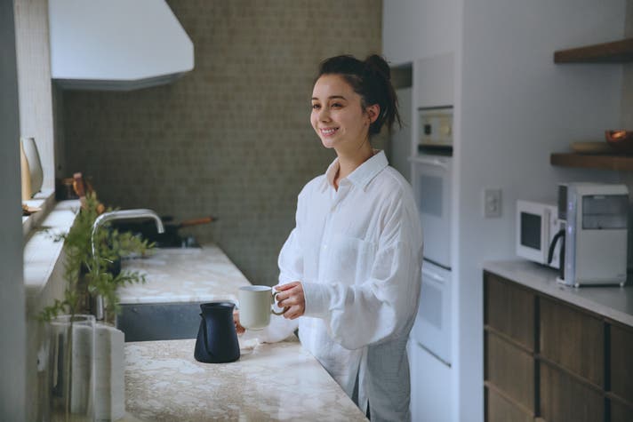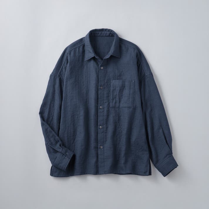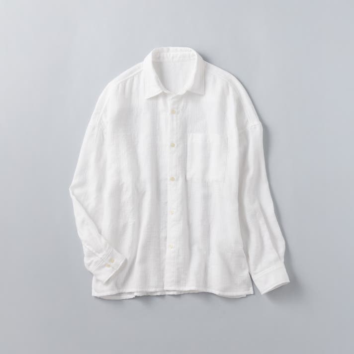 マシュマロガーゼパジャマは、従来のパジャマのイメージを完全に覆すスタイリッシュなデザインを採用しています。トップスはトレンド感のあるオーバーサイズシャツとして設計し、リラックスしながらもこなれた印象を演出。