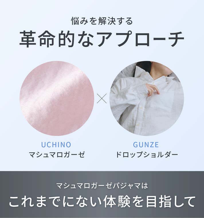 A: 2つの特許技術(マシュマロガーゼ×ドロップショルダー設計)の組み合わせにより、快適寝返り設計と、心地いい肌触りを両立している点が最大の違いです。