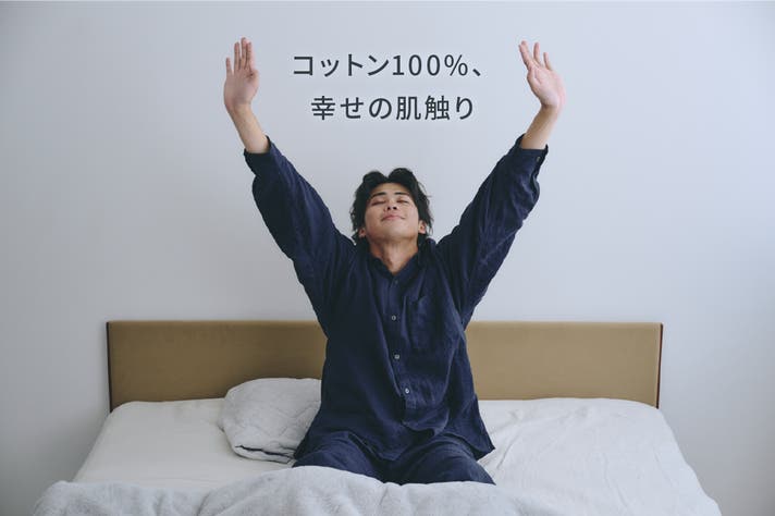 綿100% マシュマロガーゼ(特許取得素材)。肌に優しい天然素材で、一晩中快適な睡眠環境をサポートします。