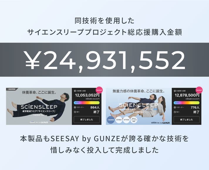 UCHINOの「究極の肌触りと機能性を追求する素材開発力」と、SEESAYの「人体の動きを科学的に分析した設計力」が組み合わさることで、これまでのパジャマの概念を根本から覆す製品が誕生しました。