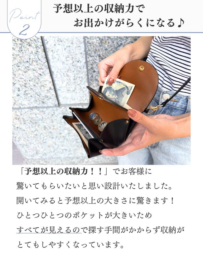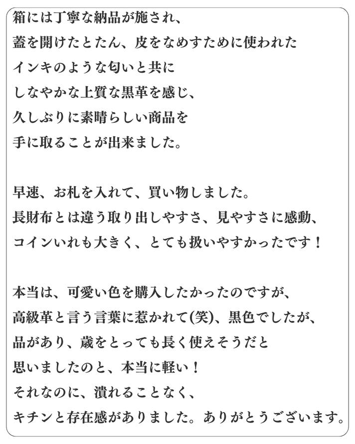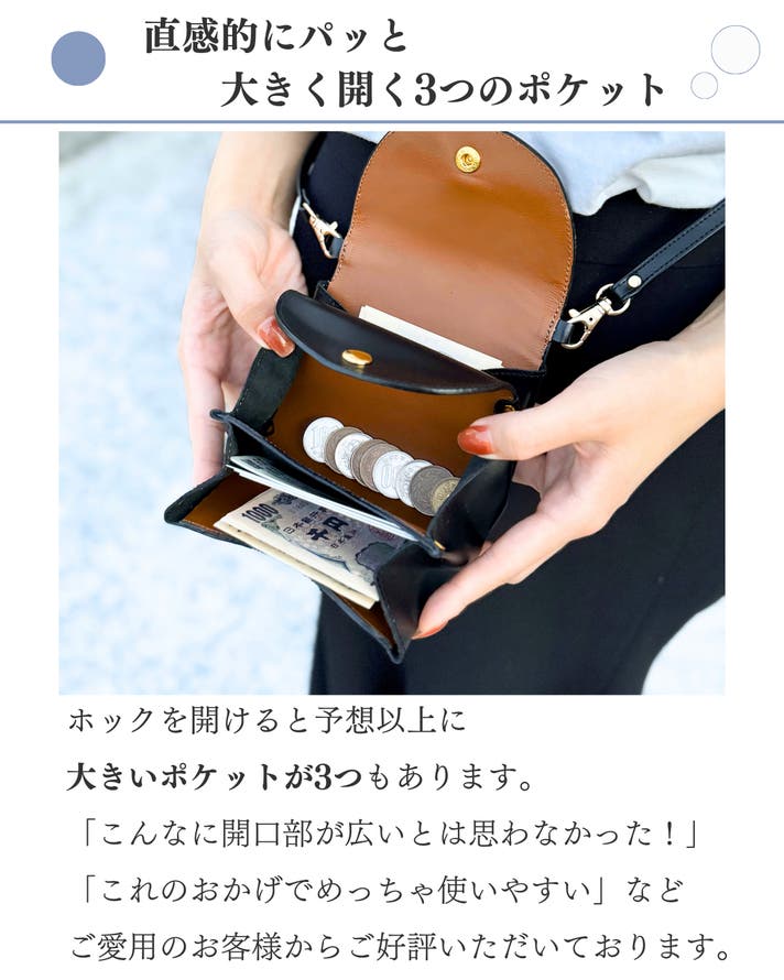 - 長財布とは違う取り出しやすさ、見やすさに感動。コイン入れも大きく、とても扱いやすいお財布