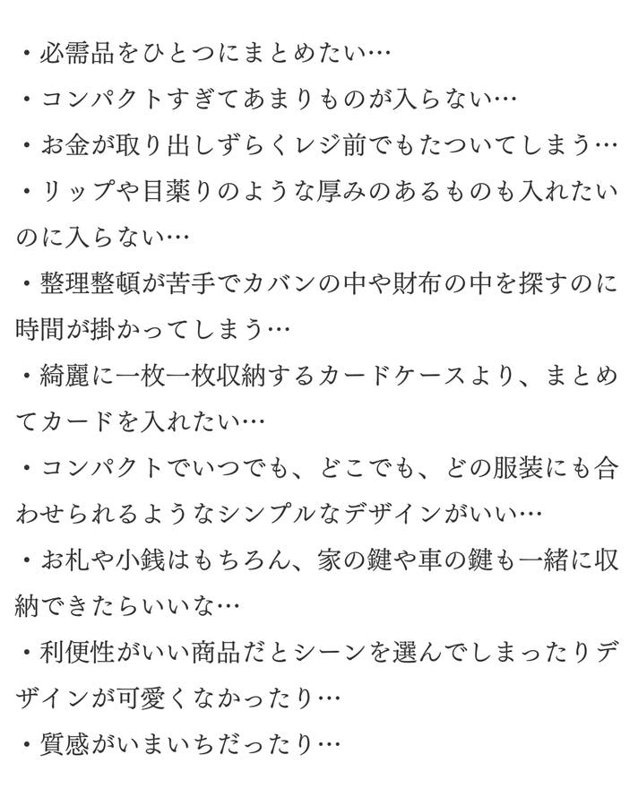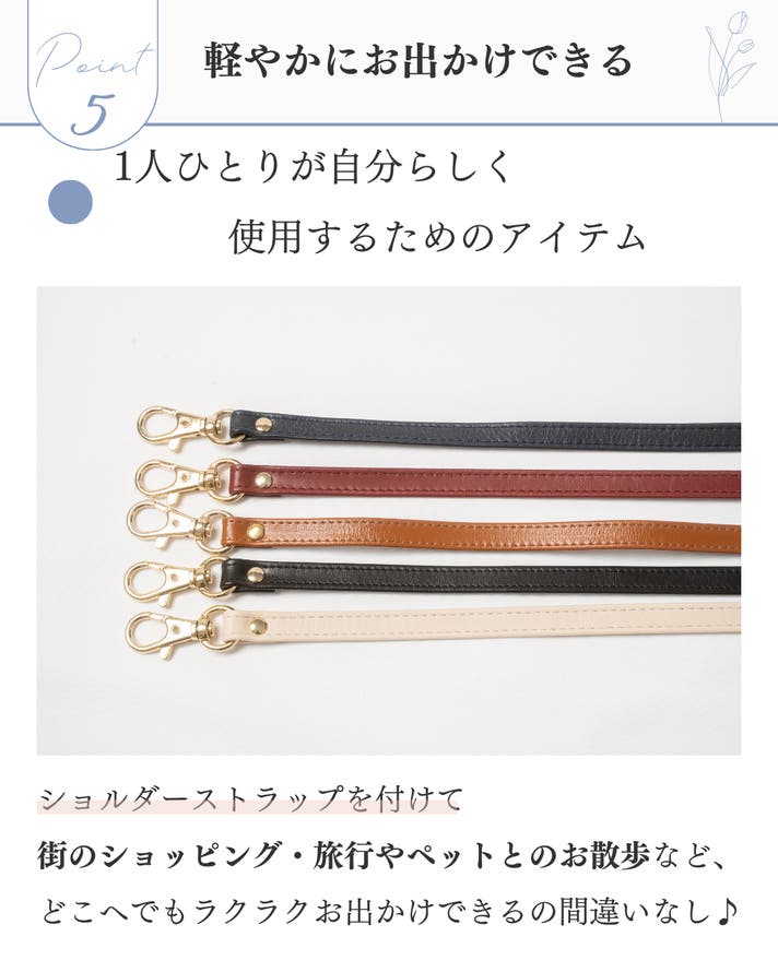 - 持ち歩きやすさやデザイン、利便性がとてもよく、軽やかにおでかけできる