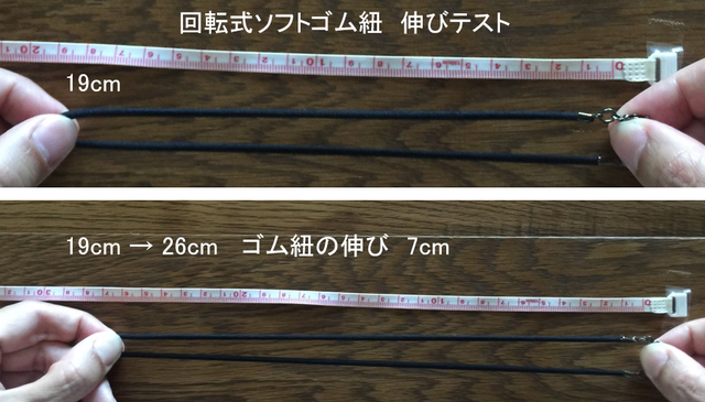 *回転式ソフトゴムと、固定式ハードゴムの伸びの差