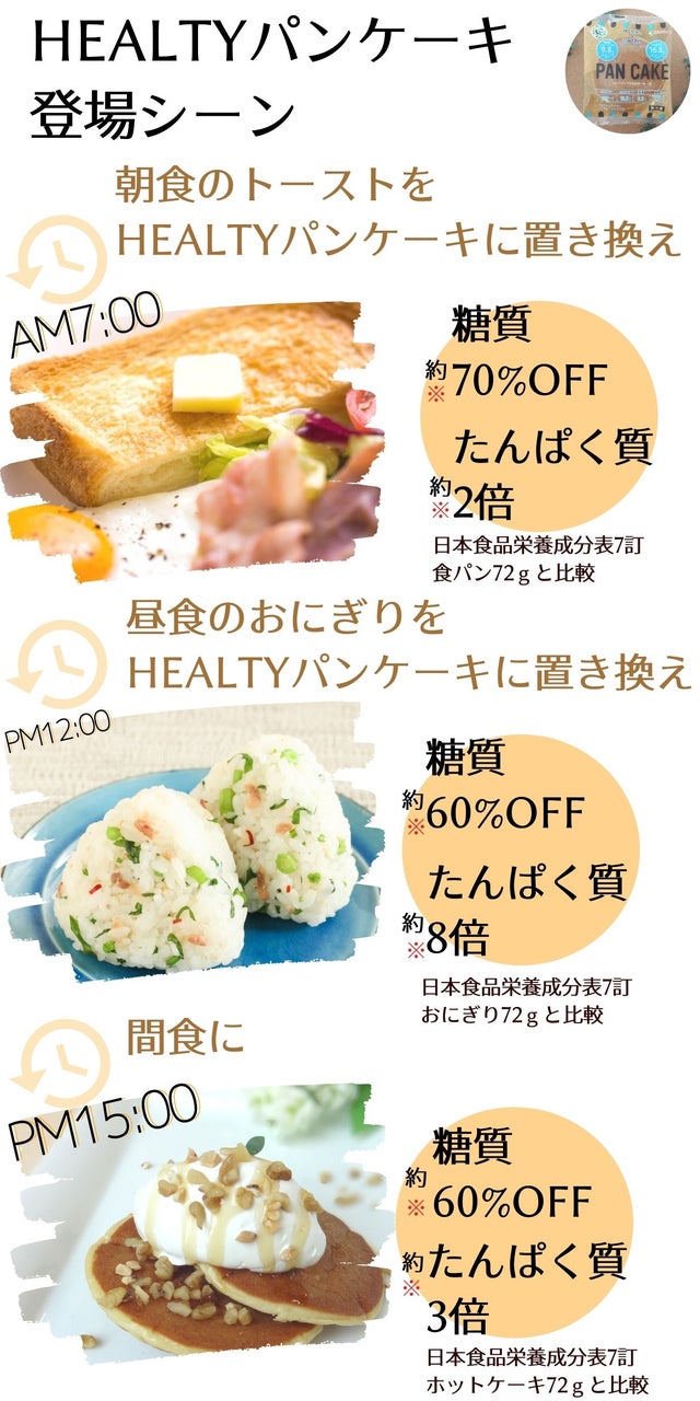 (下表参照:上,HEALTYパンケーキ、下,一般的なパンケーキ)