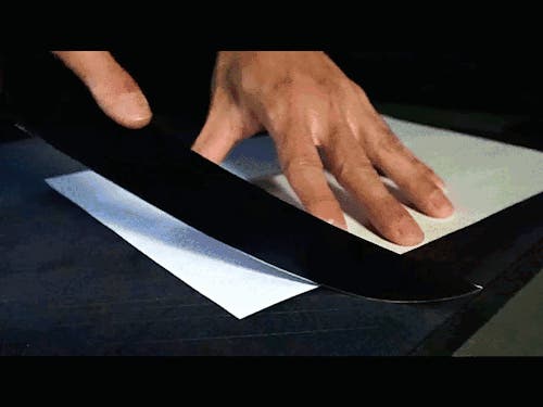 一方、日本刀由来の反りを持つ【墨月:改-Limited Edition-】は、押し込む動きや、引く動きの中でも刃の接触点が自然に移動します。