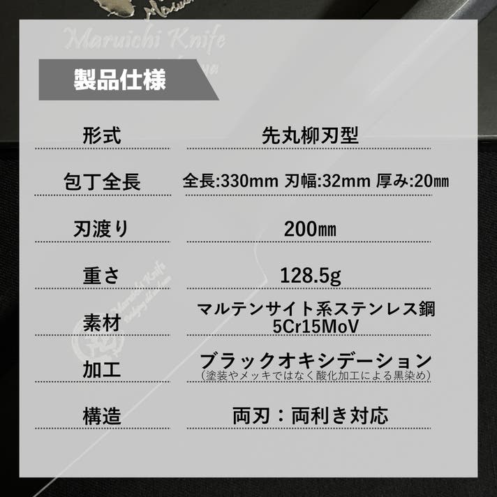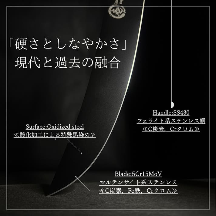 - 塗装では得られない剥げにくい黒。酸化加工によるマットな質感。佇まいまで美しい“魅せる包丁”です