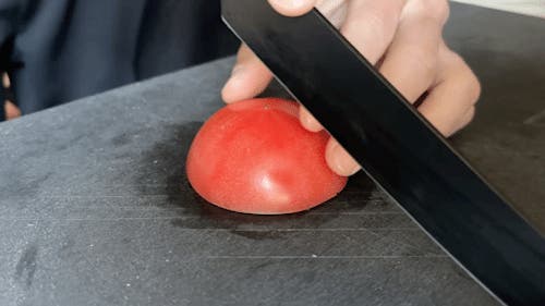 通常の包丁は刃が直線的なため、前か後ろにスライドさせる動きで切るのがが基本です。