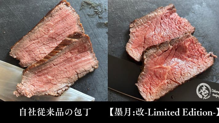一方、墨月は刃が滑るように入り、繊維を潰さないように切断。