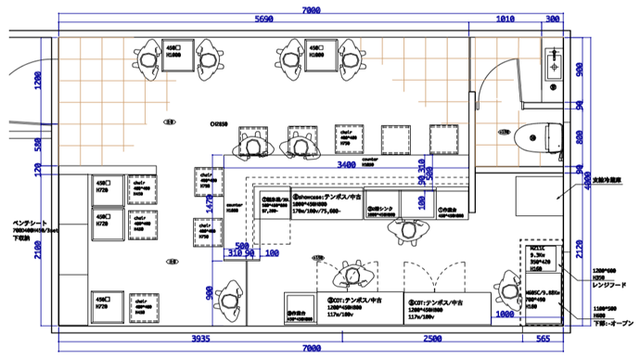 ※上の写真は図面以外は間借りの「CafeCocochi」の写真になります。