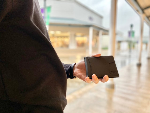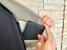 外側のカード収納は、RFIDスキミング防止機能がついています。しかし、Suicaなどの交通系ICカードはそのままで改札機を通過することができます。