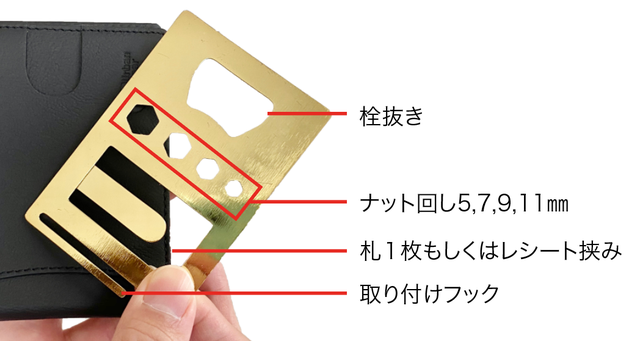 - 栓抜き、ナット回し、札挟みクリップなど便利なアイテムもコンパクトに持ち歩きが可能♪