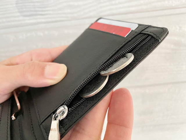 - ジーンズのポケット、ジャケットの内ポケットにもすっぽり入る!コイン収納付き薄型・コンパクト財布