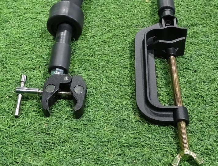 ボールだけを打つのが理想ですが挟み込んだゴム部分やその他の場所を打つとクランプ部が回ったり、フレキシブル部が曲がったりします。できる限りの衝撃を逃がす設計にはなっておりますが取り付け部分を傷つける場合もありますので付属しましたゴムシートを間に挟んで傷防止に使用をお願い致します。
