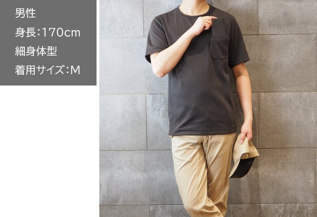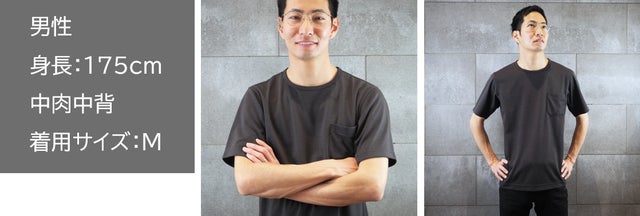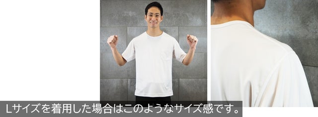 動体裁断で仕立てたTシャツなら、スマートなシルエットを維持したまま、両⼿をあげても裾の位置がほとんど変わりません!!