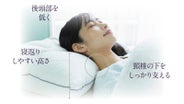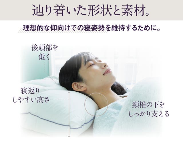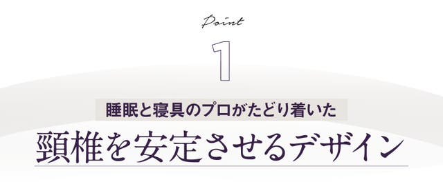 さらに、首の部分には緩やかなカーブを描くデザイン。頸椎部分がより枕にフィットし、心地よく首と後頭部を支えます。気道も確保でき、寝姿勢が安定します。