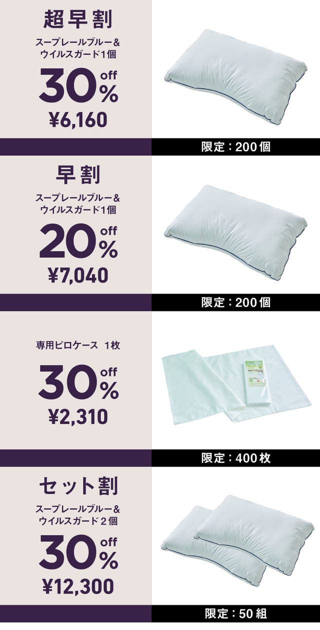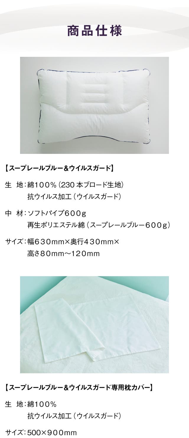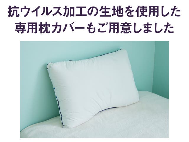 より心地よい快眠体験をしていただくために、スープレールブルー&ウイルスガードに使用した生地と同じものを使用した、専用枕カバーもご用意しました。
