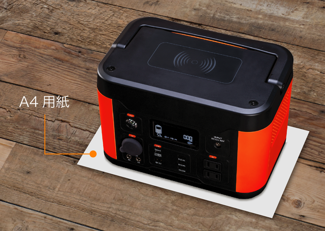 【PORTEX】は、これだけの容量と出力性能を備えながら、従来の大容量電源のイメージを覆す、256×172×171mmというA4サイズの紙に乗るコンパクトさ。重量もわずか4.7㎏なので、子どもや女性、高齢者の方でも簡単に持ち運ぶことができます。