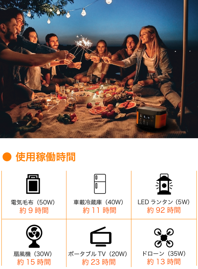 - 大容量139,200mAh、最大1000Wの高出力でアウトドアライフをもっと快適に